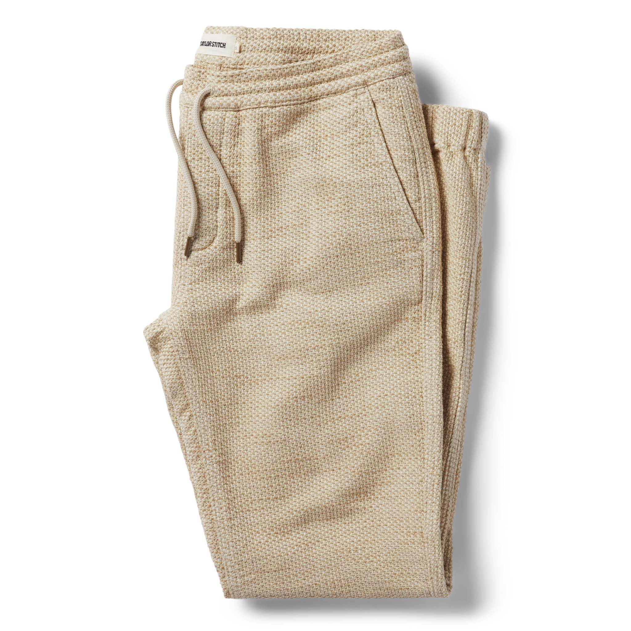 “Sashiko'' refers to an ancient Japanese stitch pattern that was originally used to bolster and beautify the workwear of old. While the traditional stitch adds some amazing texture on its own, we decided to up the ante by using three distinct yarn colors for even more visual appeal that will only get better with each wash and wear. Finished with signature features like a functional four pocket design, elasticated drawcord waist, and a whole lot of classy comfort.