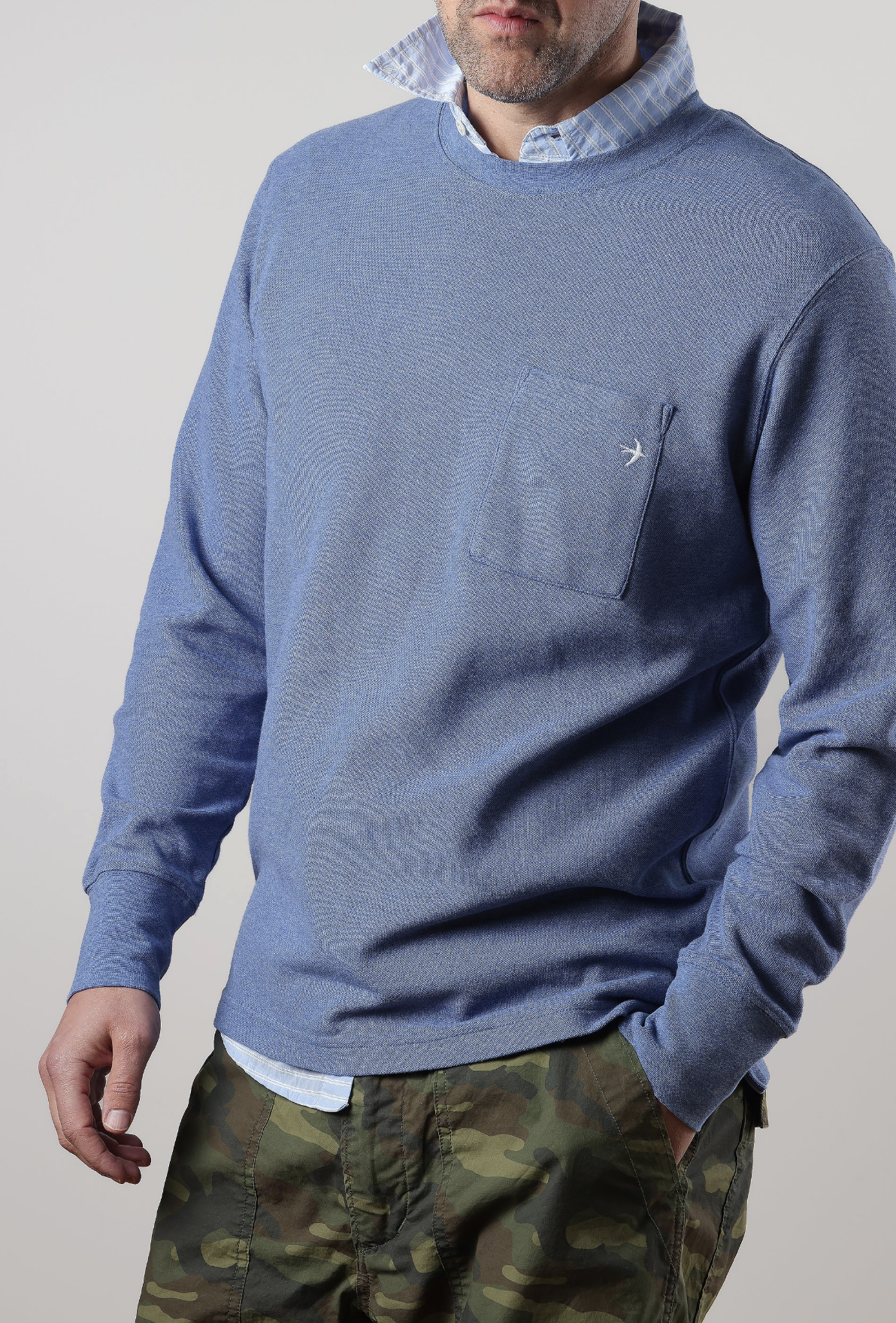 • single patch pocket w/ embroidered barn swallow