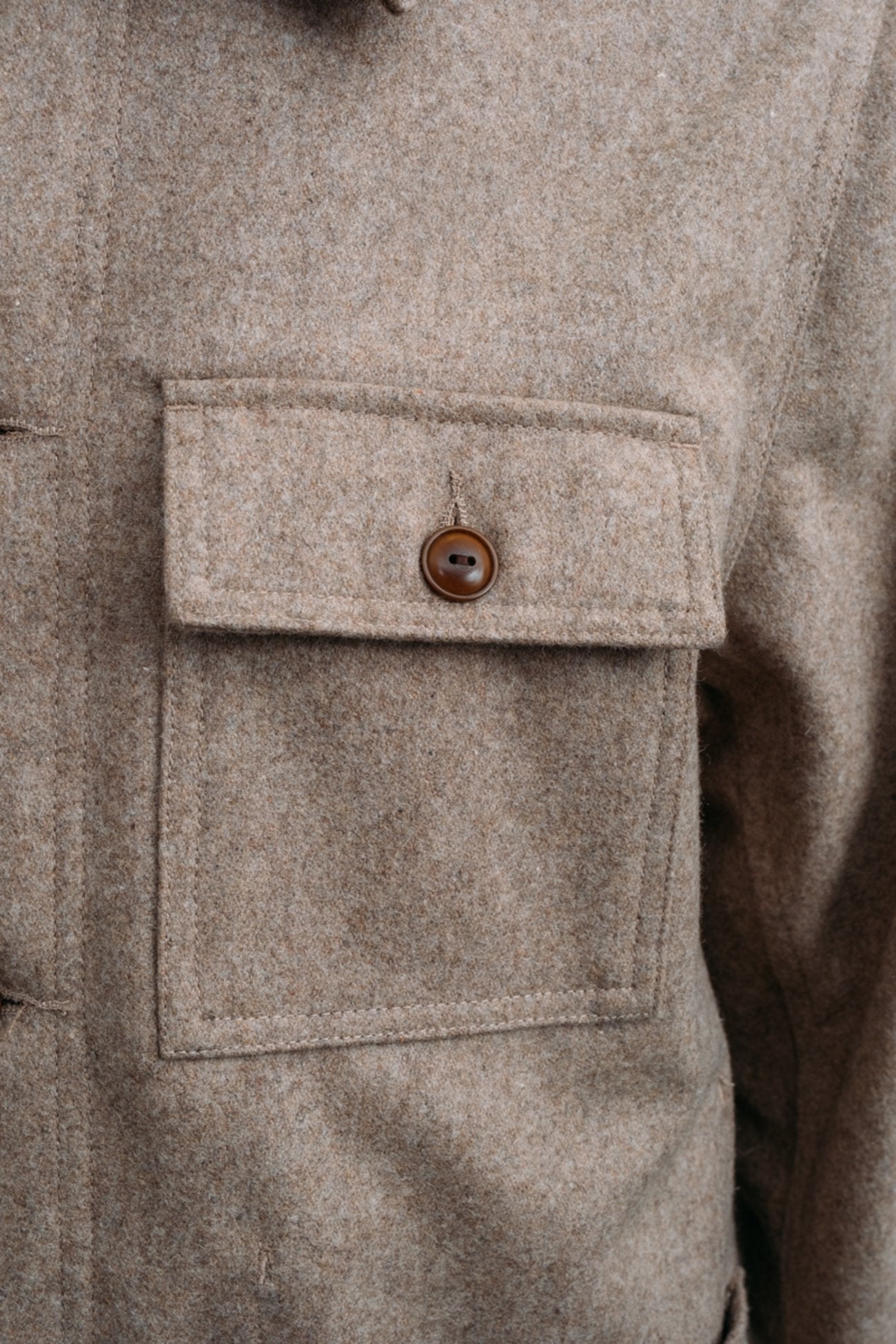 - 29" WOOL BLEND UNLINED "CHORE JACKET" WITH COROZO BUTTON FRONT CLOSURE