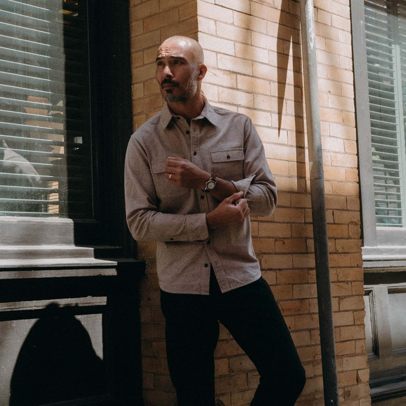 - Two oversized patch chest pockets with button-through flaps