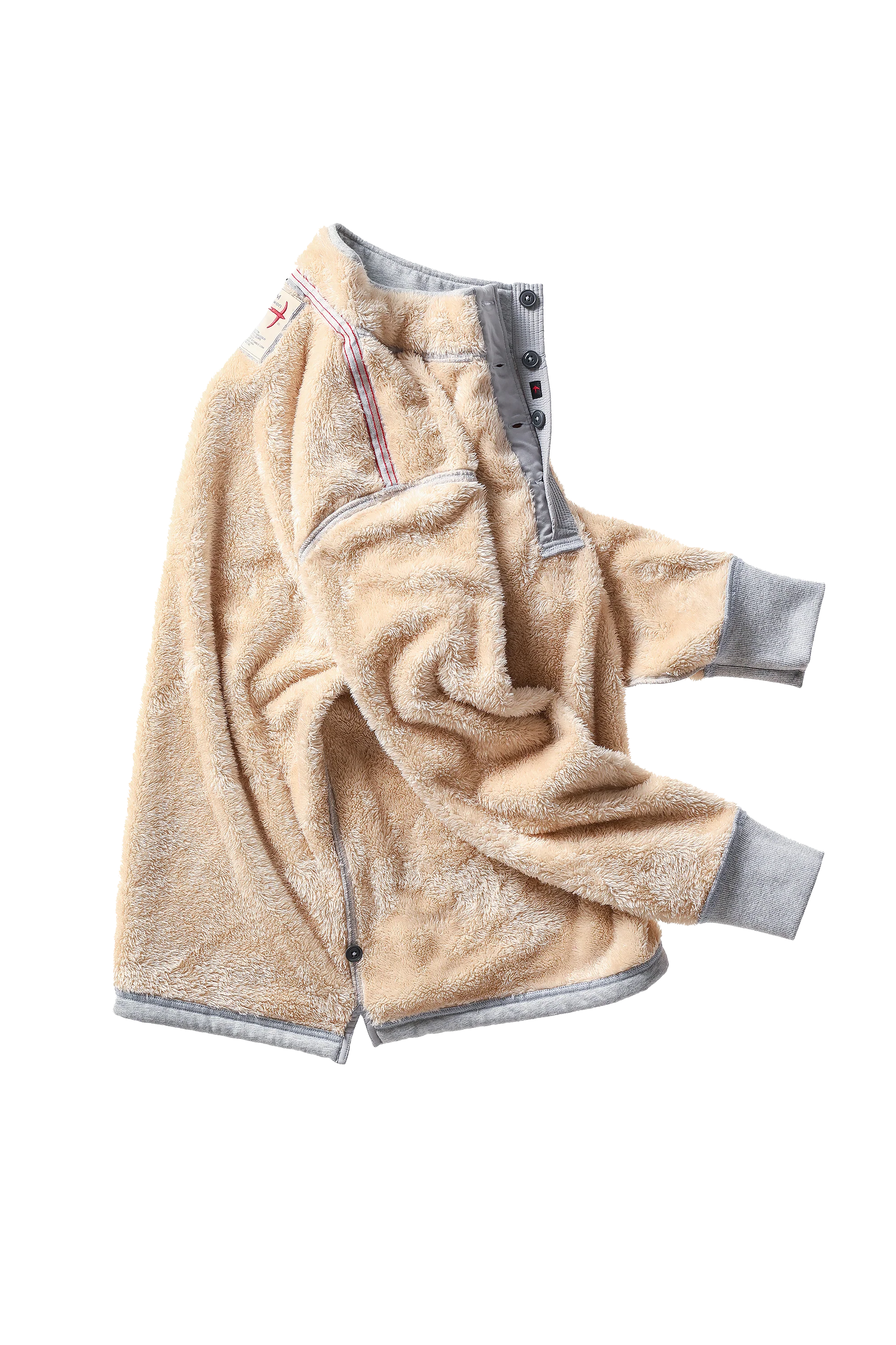 Whatever you have in store for the day, this mock will keep up. The bonded thermal cotton jersey with lightweight pile backside makes for a tremendously wearable garment, functional across a broad range of activity and temperature. Paired with our unique button placket and this mock becomes one of the most important knits that we make.